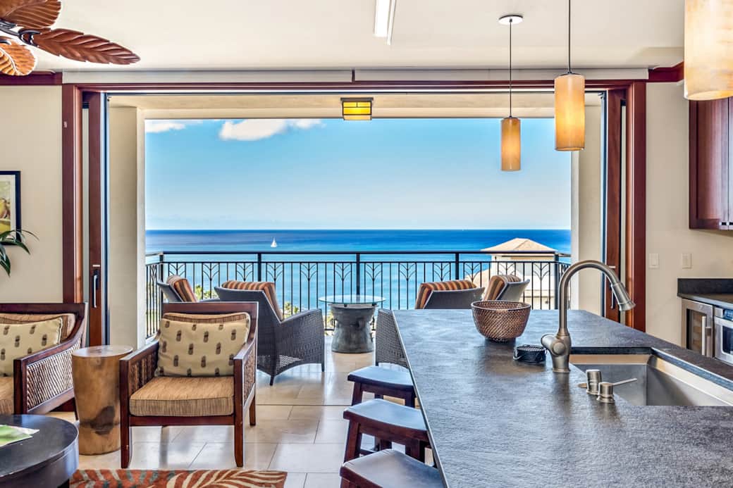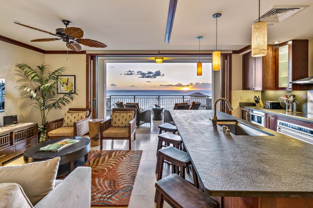 Spectacular Ocean view from your suite located on the highest floor (16th floor Penthouse) at the Beach Villas. Your spacious villa has over 1507sf which leads into a 227sf of lanai through pocket sliding glass doors.